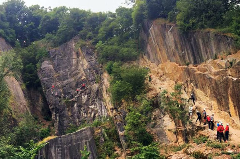 U zult de verschillende technieken leren betreffende de veiligheid en het correct gebruik van het materiaal, verder zullen onze instructeurs verschillende soorten knopen aanleren die u nodig kunt hebben. Nadat elke deelnemer volledig is uitgerust vertrekt u voor de verkenning en de beklimming van een klimwand van blauwsteen, waarna u zult abseilen, ook voorzien we een zeer spectaculaire “rappel” (adembenemend !)